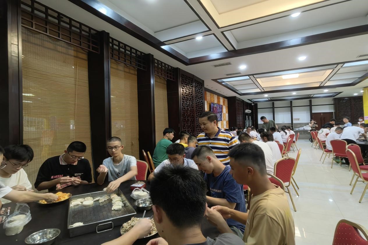 2022级新生齐聚指定地点,学院党委副书记叶灯洲、全体新生班主任、22级新生辅导员熊腾飞一起进行包饺子活动,共同感受浓烈的节日氛围。