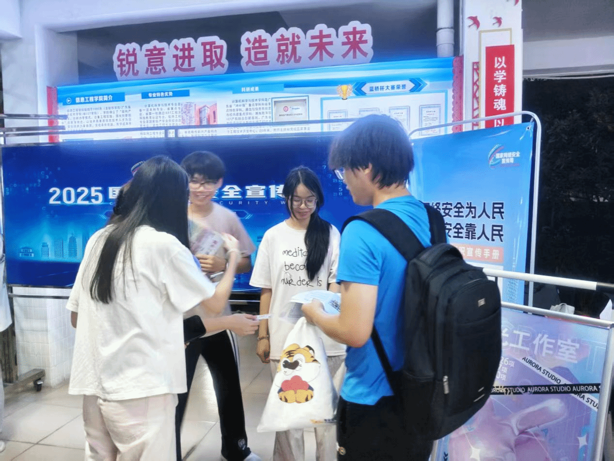 为积极响应国家网络安全宣传周的号召,全面提升我校师生的网络安全防护意识和技能,营造安全、健康、文明的校园网络环境。信息工程学院网络安全社团及学生工作室于9月28日—29日在丁香苑学生社区党建长廊以“网络安全为人民,网络安全靠人民”为主题,精心策划并组织了一系列形式多样、内容丰富的网络安全志愿宣传活动。本次志愿活动旨在提升公众的网络安全意识和防护技能,营造安全、健康、文明的网络环境。