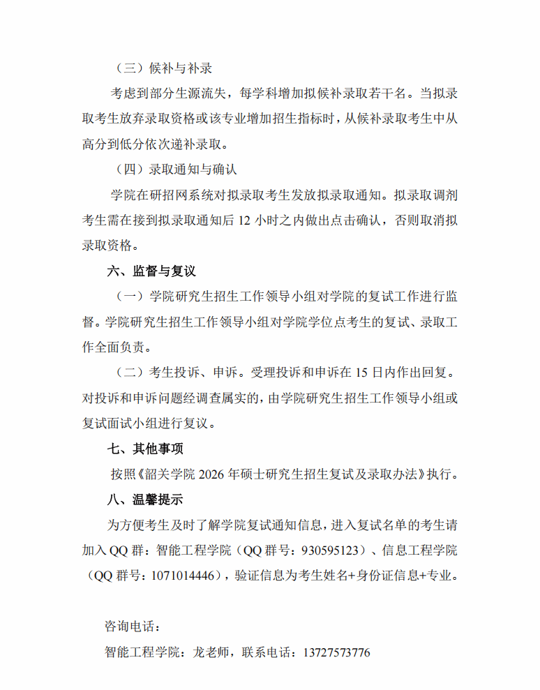 韶关学院机械专业硕士学位点2026年硕士生招生复试录取工作方案.pdf