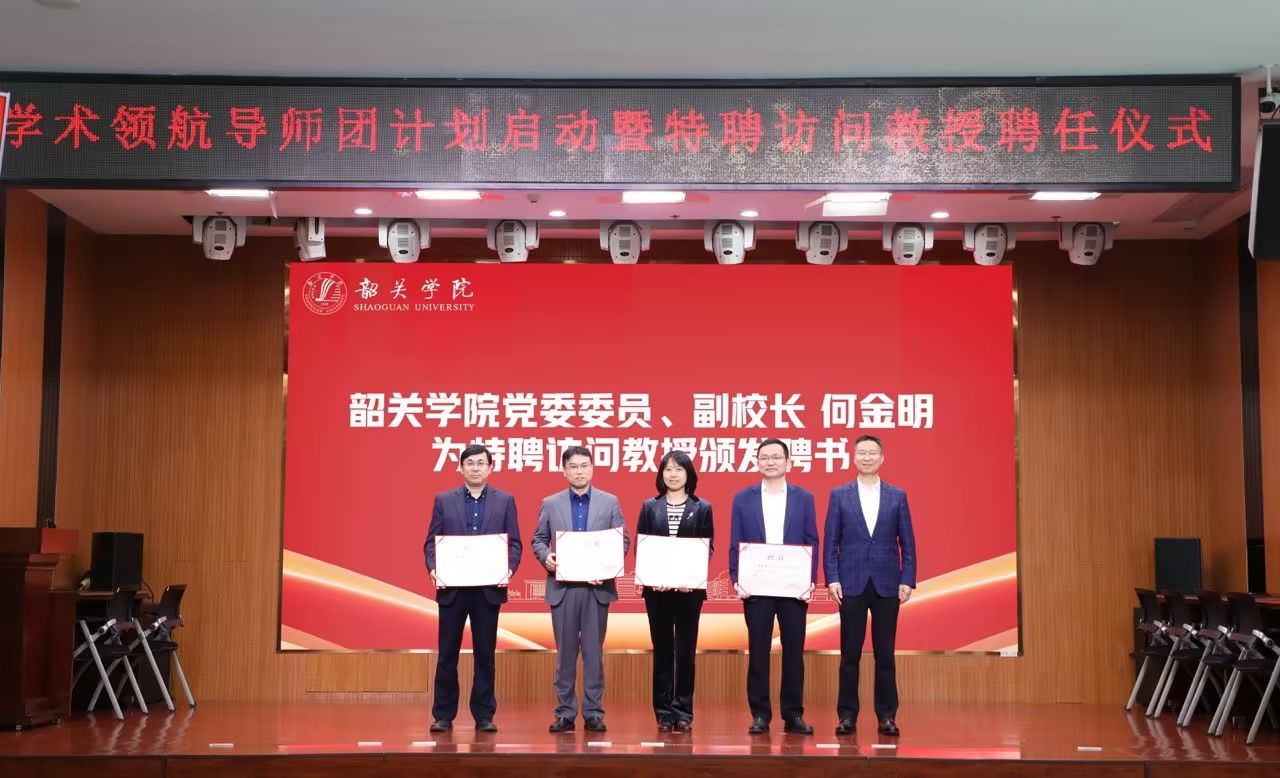 3月21日上午,深圳大学-韶关学院学术领航导师团计划启动暨特聘访问教授聘任仪式在明德区蔡志明楼举行。我校副校长何金明,国家万人领军学者、深圳大学传播学院院长巢乃鹏,青年长江、深圳大学法学院院长熊伟,国家杰青、深圳大学物理与光电学院执行院长刘丽炜,国家杰青、深圳大学大数据系统计算技术国家工程实验室主任李坚强等共同参加学术领航导师团计划的启动及特聘访问教授的聘任仪式。仪式由我校副校长郭会时主持。