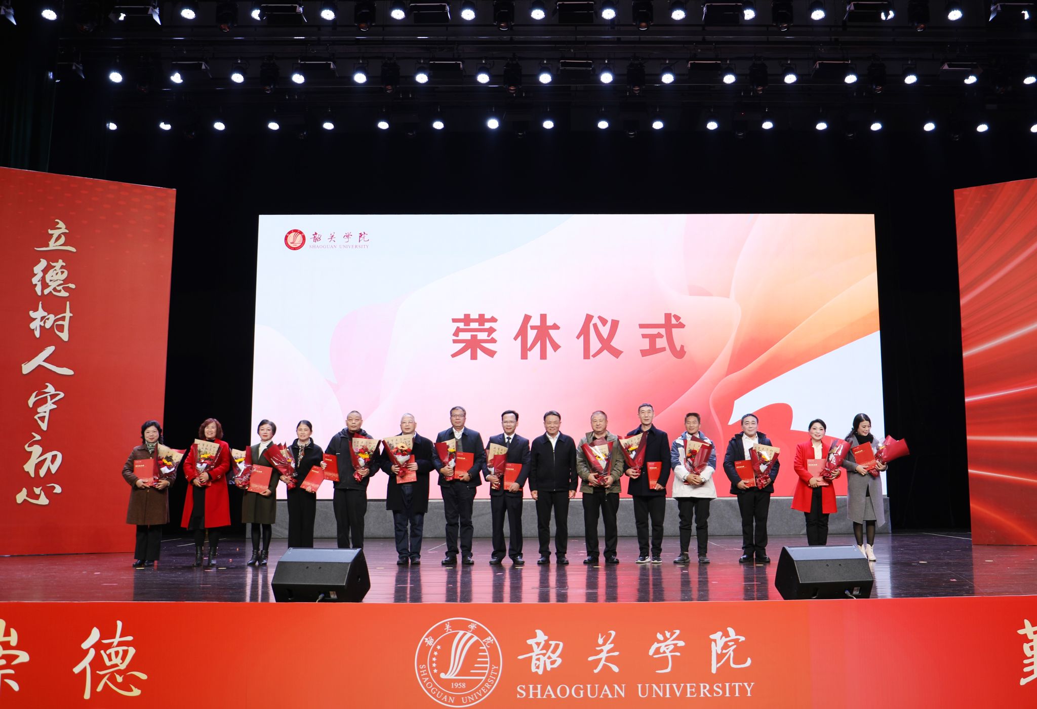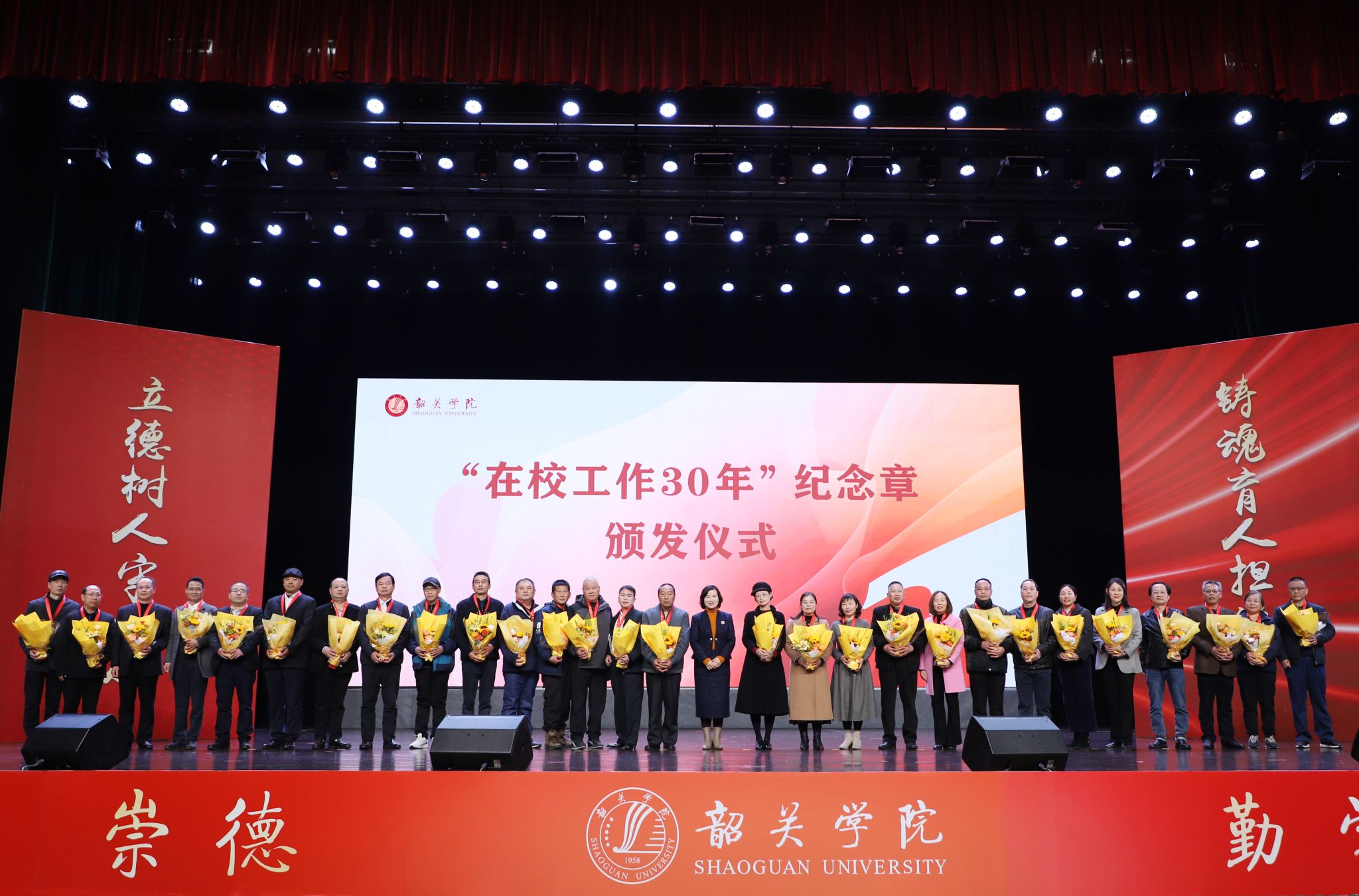现场举行了教职工荣休仪式和“在校工作30年”纪念章颁发仪式。今年,学校共有61名教职工光荣退休。他们将青春留在了校园,为学校事业发展作出了重要的贡献。广东省粤北食药资源利用与保护重点实验室主任钟瑞敏教授作为在校工作30年教师代表发表感言。