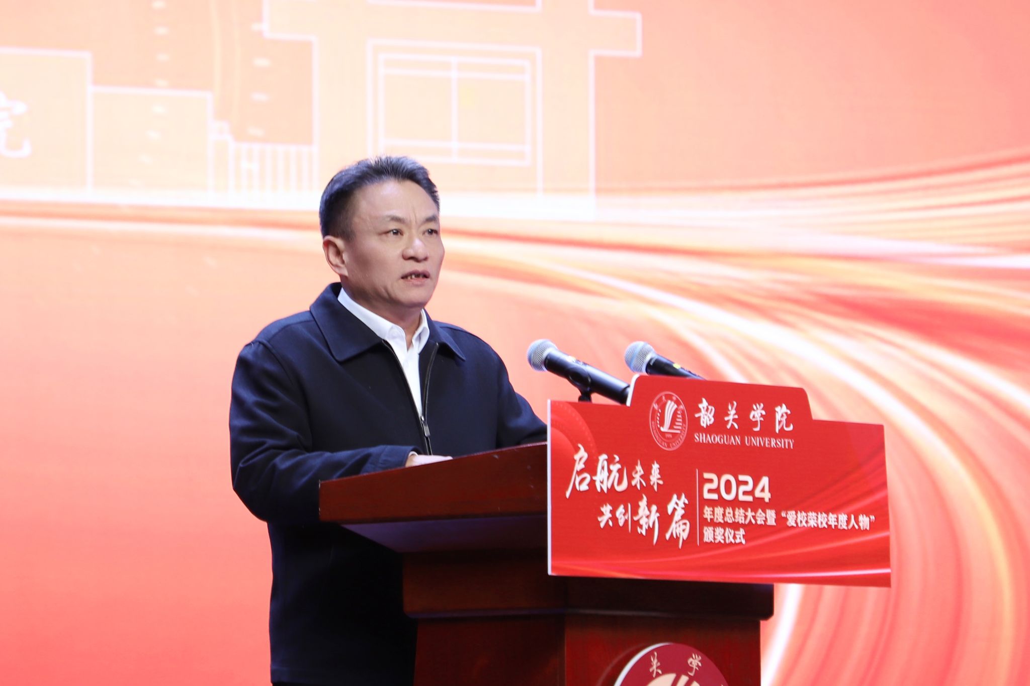 会上,孔云龙致新年贺词。他代表学校向全体韶院人以及一直以来关心、支持和帮助我校各项事业发展的社会各界人士致以感谢与祝福。他指出,2024年,全体韶院人共同亲历了办学历史上具有里程碑意义的大事、喜事。学校正式获批硕士学位授予单位,实现了韶院人多年来孜孜以求的梦想。孔云龙从“凝心铸魂、砥砺奋进,党的建设新的伟大工程更加坚实”“勇担使命、求真务实,高质量发展步伐更加有力”“挺膺担当、奋发有为,服务地方发展成效更加突出”“同心同德、同向发力,韶院家园建设更加美好”等方面总结了学校在过去一年中取得的显著成效。