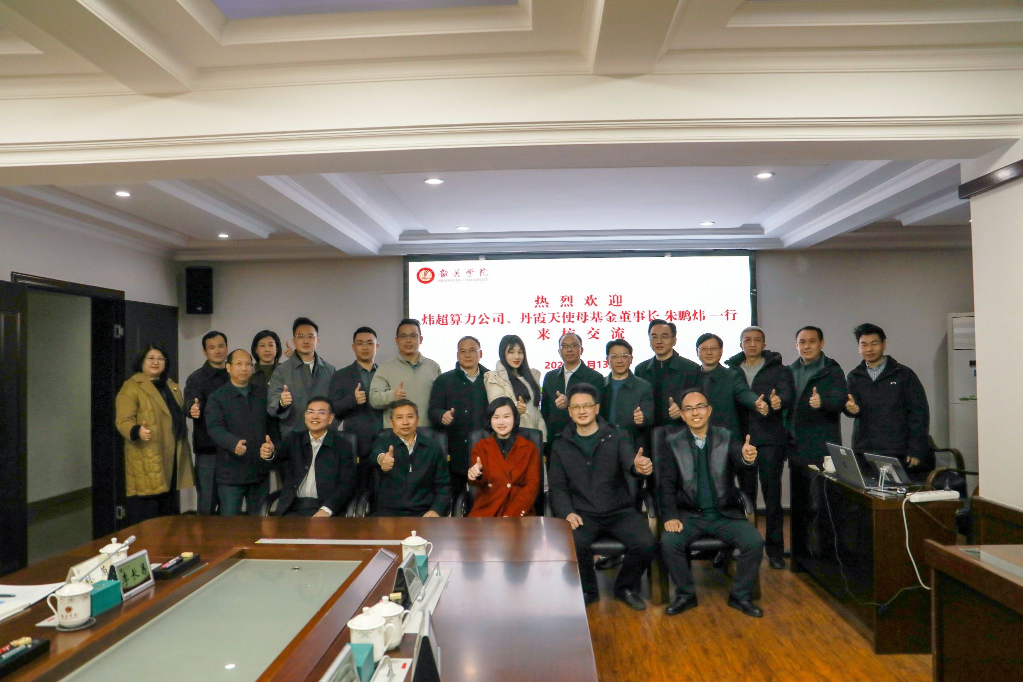 1月13日,南山区政协委员、炜超算力公司和丹霞天使母基金董事长朱鹏炜,韶关东阳光董事长张红伟,韶关市工信局党委书记欧阳全,广东文投国富基金管理公司董事长张树滨,深圳国腾安集团创新事业部总经理洪天麟,快乐星球执行制片人杨乘等一行来校交流。学校校长张晓红,副校长田广增、郭会时与朱鹏炜一行进行了座谈交流。