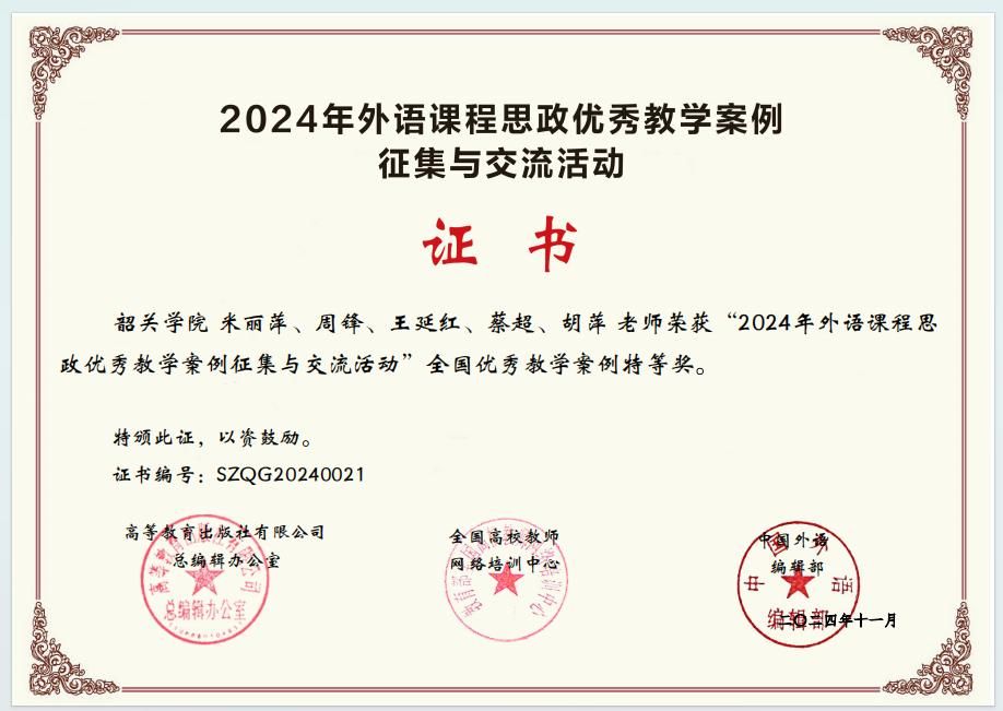 近日,由高等教育出版社、全国高校教师网络培训中心与中国外语编辑部共同开展的“2024年外语课程思政优秀教学案例征集与交流活动”公布全国获奖名单。我校外国语学院教师米丽萍团队作品《私の国》荣获全国特等奖,甘细梅团队作品《大学英语》和徐爽老师作品《改变刻板印象,传递真实中国声音》均获全国二等奖,创下我校在该赛事中的历史最好成绩。