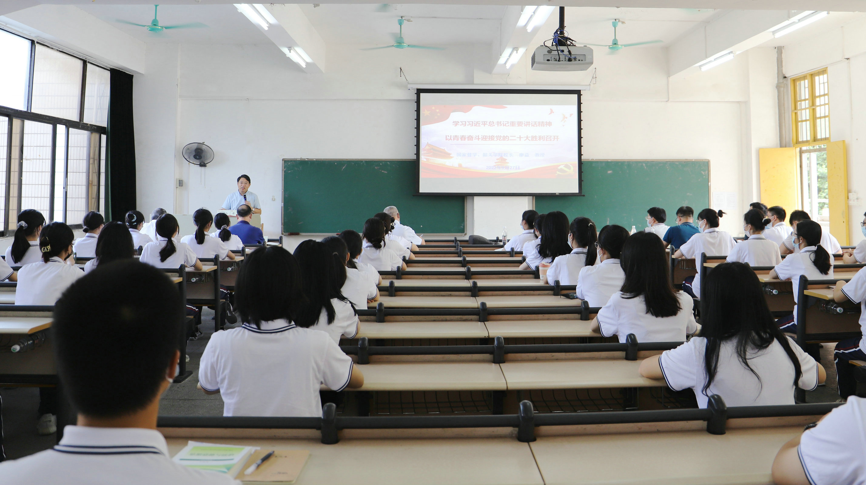 9月27日下午,国家督学、学校党委副书记、校长廖益教授以《学习习近平总书记重要讲话精神 以青春奋斗迎接党的二十大胜利召开》为题在黄田坝校区群体楼C202多媒体课室为新生讲授新学期“思政第一课”。