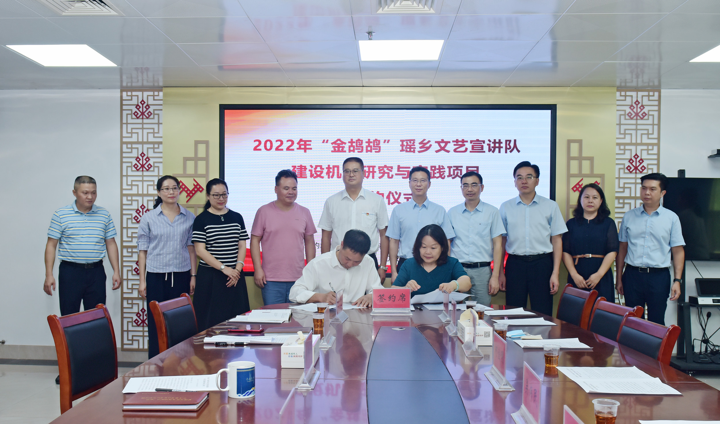 7月13日下午,我校和韶关市乳源瑶族自治县合作共建的2022年“金鸪鸪”瑶乡文艺宣讲队建设机制研究与实践项目的签约仪式在乳源县委宣传部会议室举行。我校副校长何金明、乳源县委副书记谢向军出席签约仪式。 何金明指出,...
