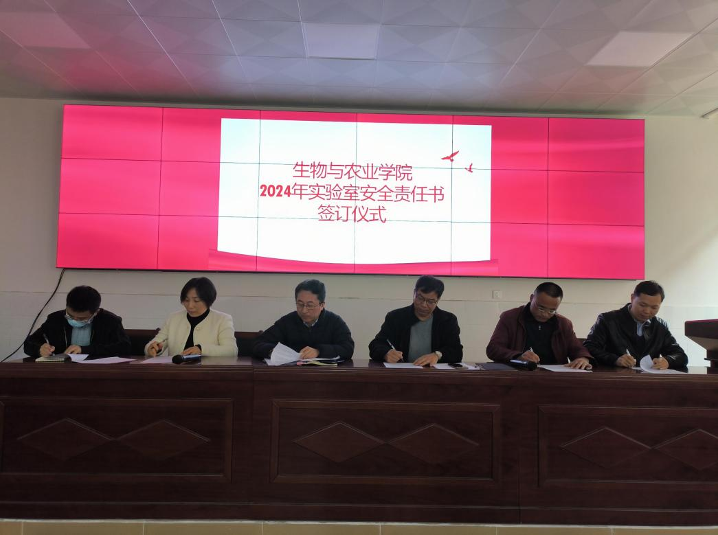 新学期伊始,生物与农业学院认真学习贯彻习近平总书记关于安全生产重要论述和重要指示批示精神,通过召开实验室管理队伍工作会议、组织学院实验室开展安全隐患排查、安全检查、实验室准入考试、签订实验室安全责任书等措施,有效推进新学期实验室安全责任落地、落实、落细,牢固树立安全发展理念,推进新学期实验室工作有序运行。