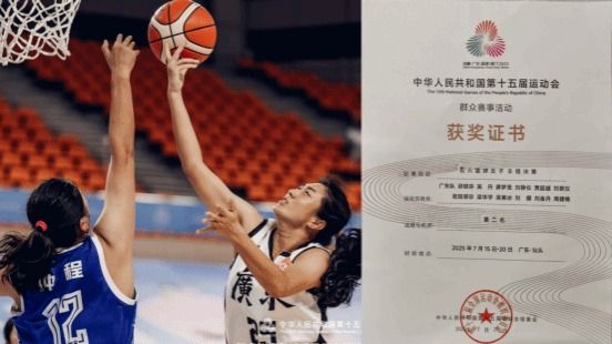 在近日结束的中华人民共和国第十五届运动会(以下简称“十五运会”)群众组篮球比赛中,我校体育学院刘娜老师作为广东省代表队成员,凭借出色的竞技水平和顽强的拼搏精神,在十五运会比赛中脱颖而出,勇夺群众篮球项目五人篮球女子B组第二名。