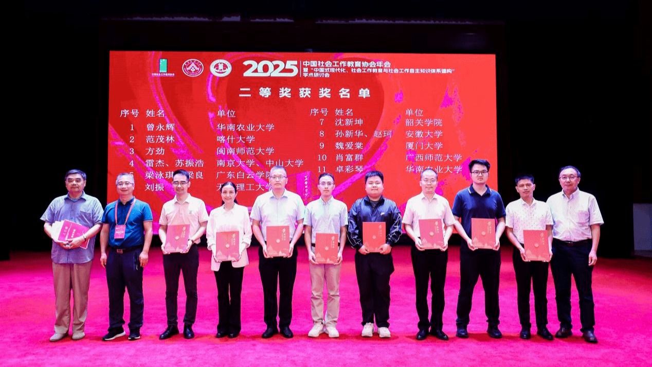 中国社会工作教育协会(China Association for Social Work Education,简称CASWE)2025年年会暨“中国式现代化、社会工作教育与社会工作自主知识体系建构”学术研讨会于8月23日至24日在华南农业大学召开。学院社会工作系教师积极参与多个分论坛并进行学术交流,并在多项环节中取得显著成果。