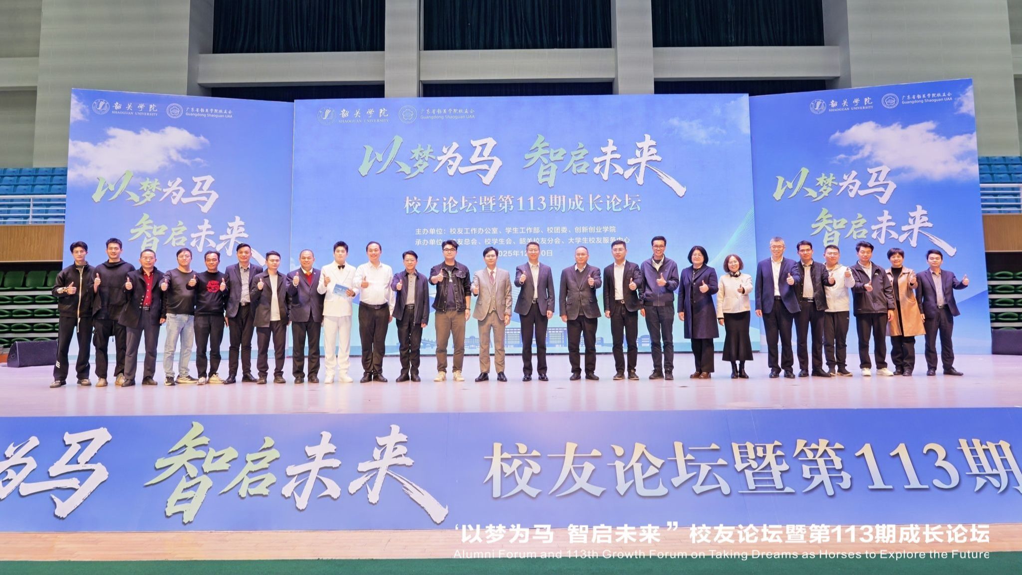 12月10日晚,由校友工作办公室、学生工作部、校团委、创新创业学院联合主办的“以梦为马·智启未来”校友论坛暨第113期成长论坛在韶关学院知行区体育馆举行。