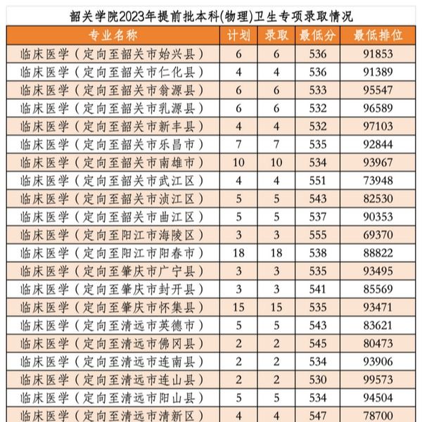 根据广东省卫生健康委、省教育厅等4部门联合印发了《关于做好2024年订单定向培养医学大学生项目工作的通知》精神,韶关学院今年继续招收订单定向培养医学大学生项目临床医学专业计划共427名,其中本科层次189名,专科层次238名。