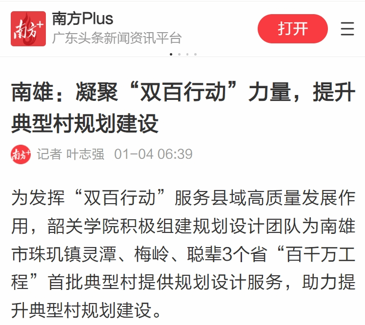 【媒体报道】南方+|南雄:凝聚“双百行动”力量,提升典型村规划建设