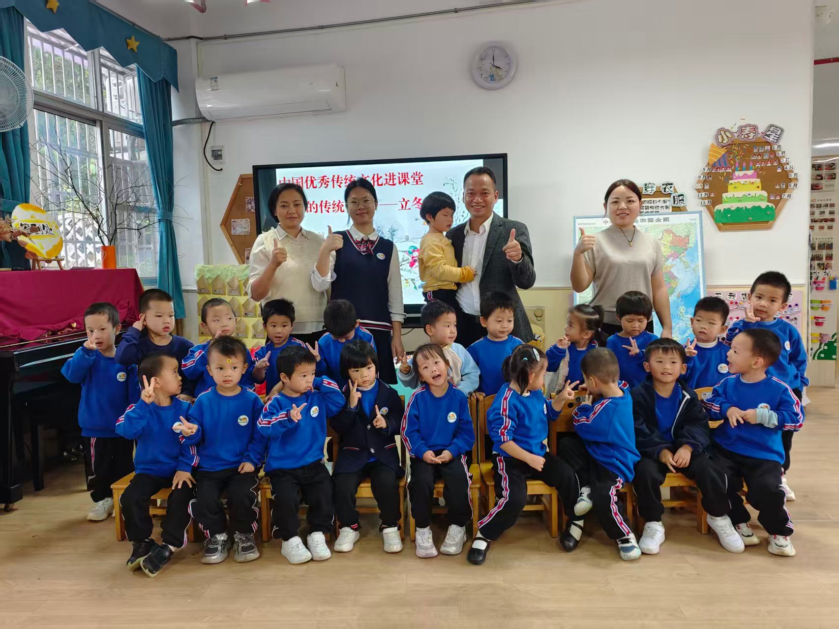 此次家长助教活动不仅为孩子们播下了传统文化的种子,更让家长以特殊的身份走进课堂,倾听孩子的童趣心声,实现了家园之间的心灵交流与同频共振。活动尾声的合影留念,定格下冬日里最温馨的画面,也为这场有温度的教育活动画上圆满句号。未来,韶关学院幼儿园将继续推进家园共育,凝心聚力为孩子们的成长保驾护航。