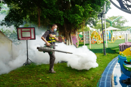 工作人员严格按照操作规范,手持专业消杀设备,对幼儿园内的教室、活动室等幼儿日常活动区域,以及户外操场、绿化带、下水道、垃圾存放点等易滋生蚊虫的卫生死角进行了全方位、无死角的消杀处理。在消杀过程中,工作人员认真细致,不放过任何一个角落,确保消杀效果达到最佳。