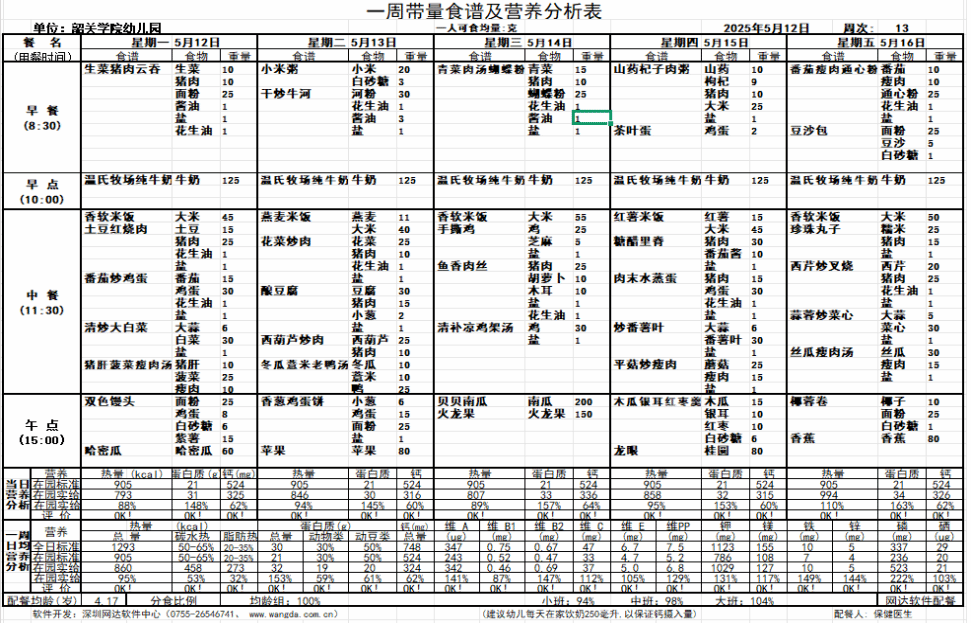 2025年5月12日-2025年5月13日 韶关学院幼儿园一周食谱