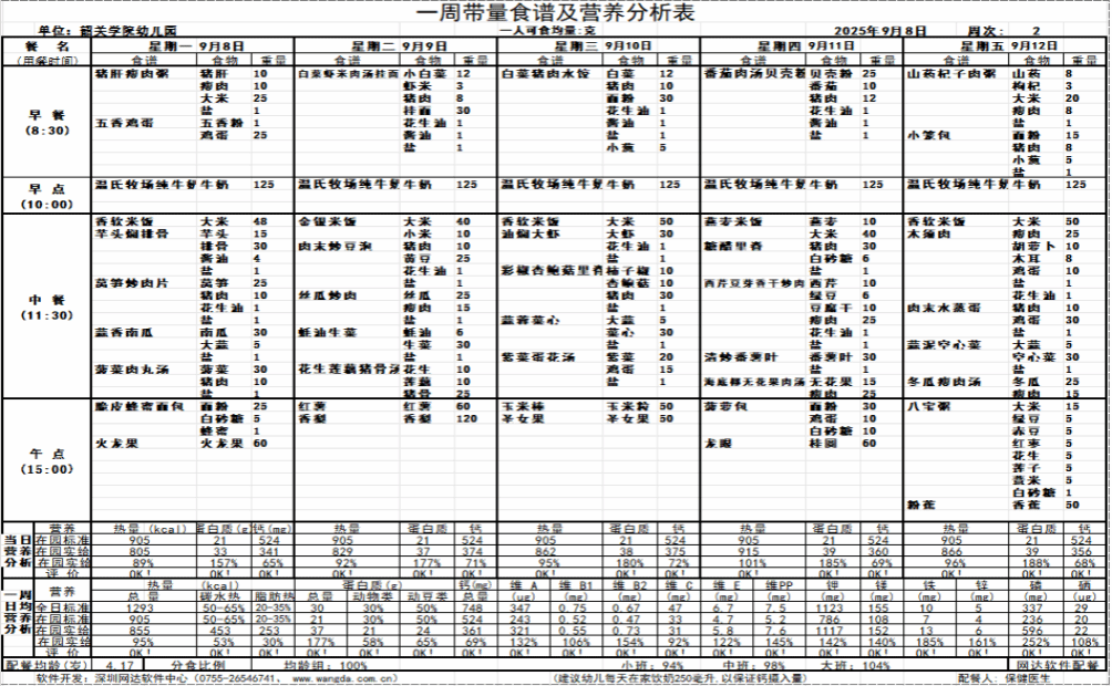 2025年9月8日-2025年9月8日 韶关学院幼儿园一周食谱
