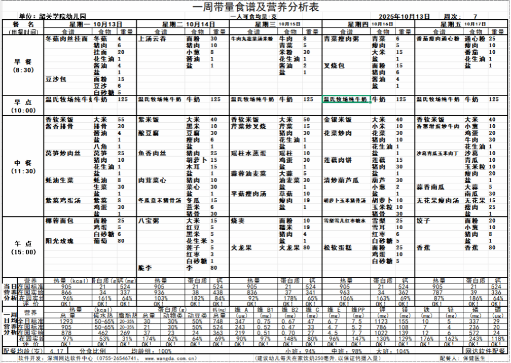 2025年10月13日-2025年10月17日 韶关学院幼儿园一周食谱