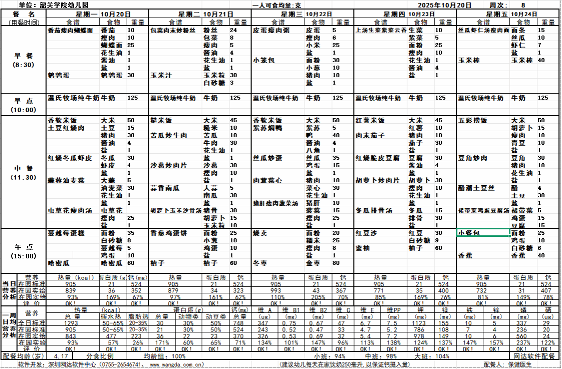2025年10月20日-2025年10月24日 韶关学院幼儿园一周食谱