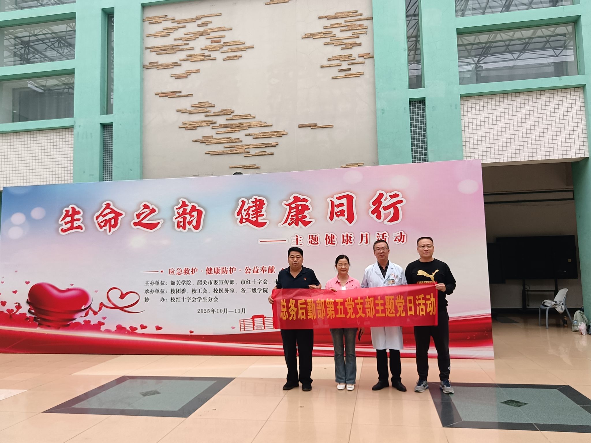 为深入学习贯彻习近平总书记关于疫情防控工作的重要讲话重要指示精神,提高我校师生传染病防治水平,强化师生防控知识和防护技能,共同筑牢校园生命安全屏障,总务后勤部第五党支部于10月25日在黎灿楼开展“生命之韵,健康同行”健康月宣教主题党日活动。
