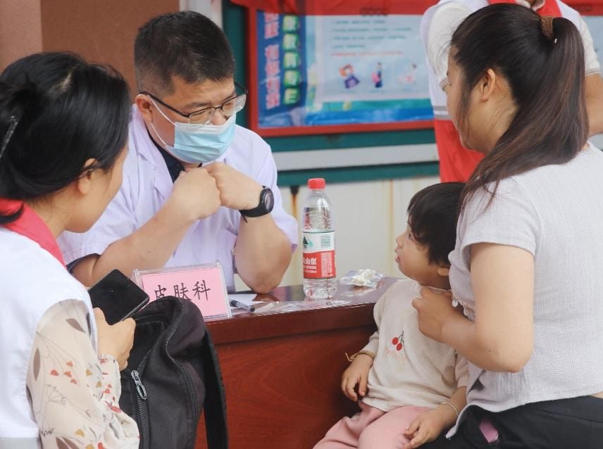 “大姐,您的血压有点高,平时要注意低盐饮食,这是降压药的使用说明……”内科医生刘如晨一边为村民测量血压,一边耐心叮嘱健康事项。活动中,医护人员针对基层高发的高血压、糖尿病、慢性疼痛等疾病,提供免费诊疗、血糖监测及个性化健康指导,并发放《慢性病防治手册》百余册。皮肤科医生周小强现场为村民提供常见皮肤病诊断,并细致讲解外用药物使用指导,“在家门口就能弄清楚病因,还教会怎么用药,太方便了!” 村民李大叔的点赞道出了现场群众的共同心声。