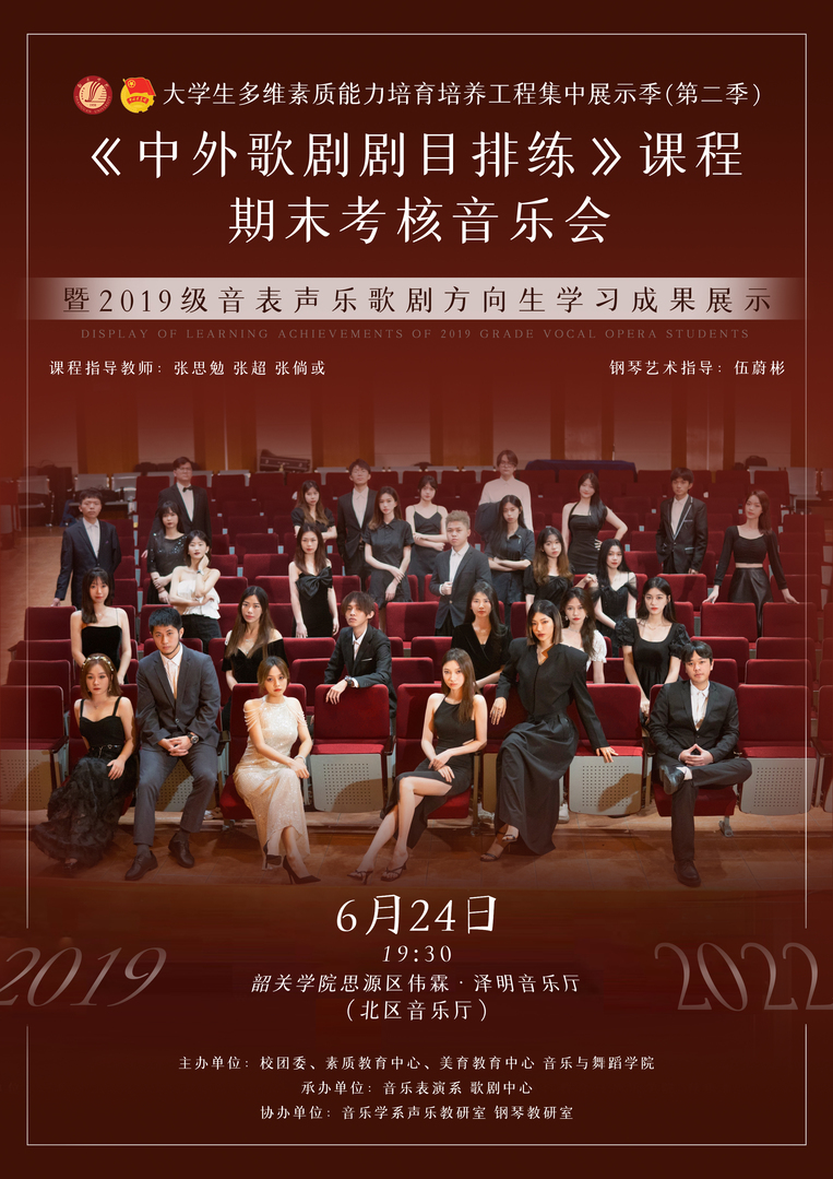 【音乐会】《中外歌剧剧目排练》课程期末考核音乐会暨2019级音表声乐歌剧方向生学习成果展示
