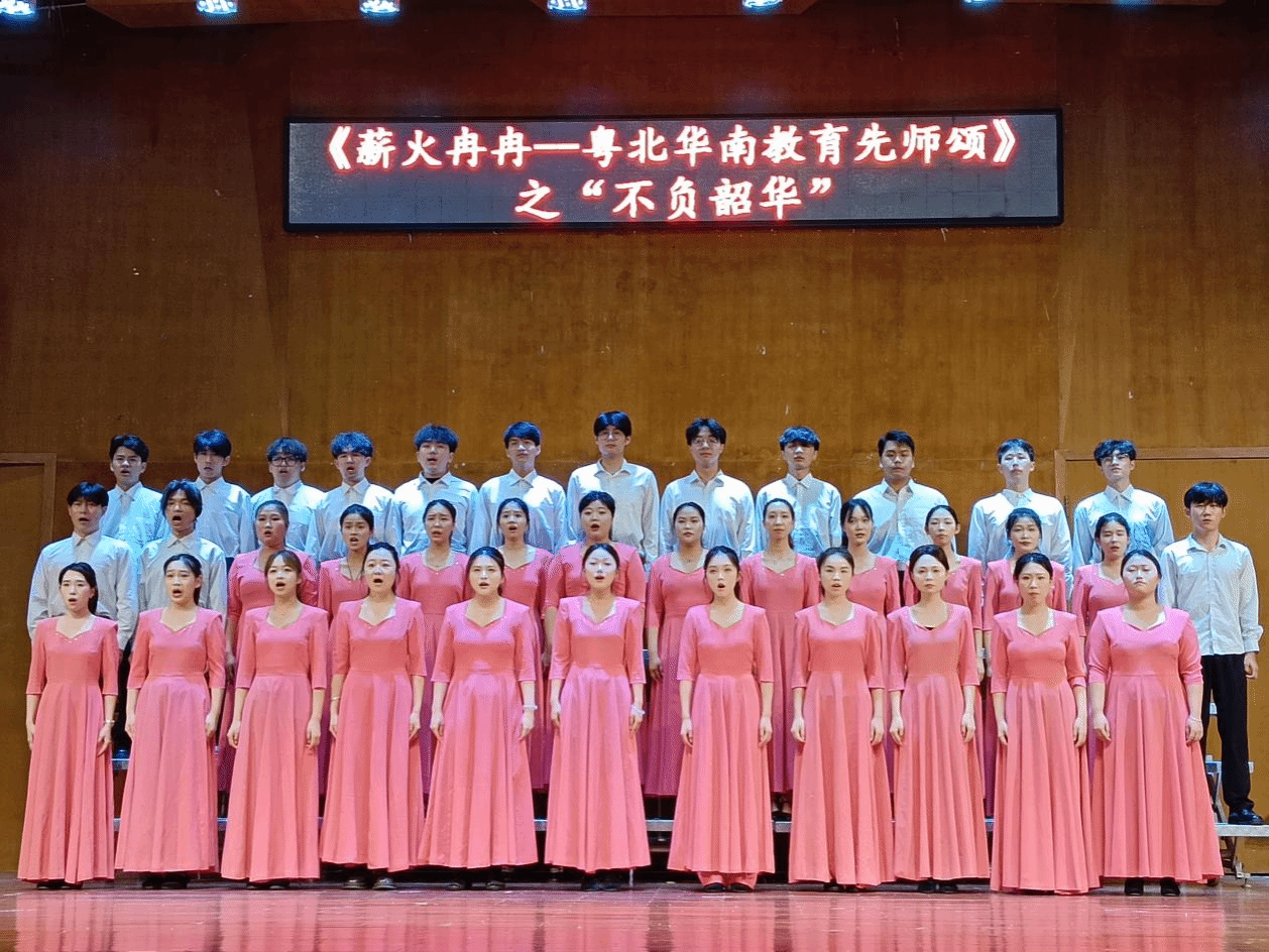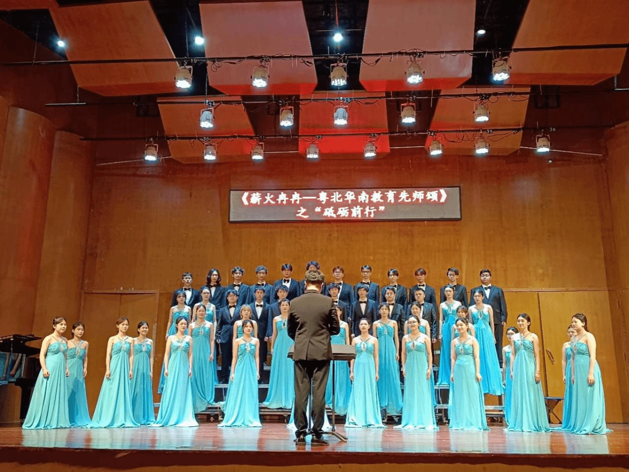 该作品由赵旭超教授创作,作品依托粤北华南教育抗战历史研究院的珍贵史料,将抗战时期华南师生坚守教育火种、服务家国大义的感人事迹凝练为音乐诗篇。音乐会聚焦组曲的第二、第三章——“砥砺前行”与“不负韶华”,通过合唱、独唱、二重唱等多元形式,带领观众重温那段烽火育人的峥嵘岁月。