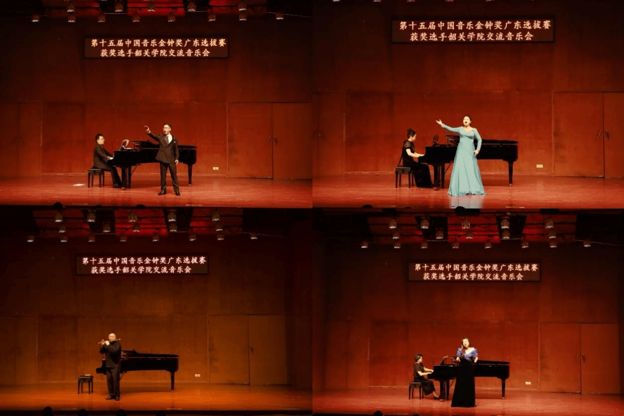 当晚的交流音乐会精彩纷呈,金钟奖获奖选手与韶关学院师生、韶关市音乐家协会会员联袂演绎,涵盖声乐、钢琴、管乐、古筝、二胡、竹笛等多元艺术门类。《茉莉花》《春江花月夜》等经典曲目与新锐创作交相辉映,生动展现中华音乐文化的深厚底蕴与时代创新。