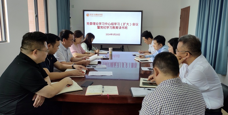 5月20日,音乐与舞蹈学院党委举行党委理论学习中心组学习(扩大)会议暨党纪学习教育读书班。学院党委领导班子成员、六级组织员、党支部书记、支部委员、办公室主任、系主任参加了第一次集中学习,会议由学院党委书记谷永芹主持。