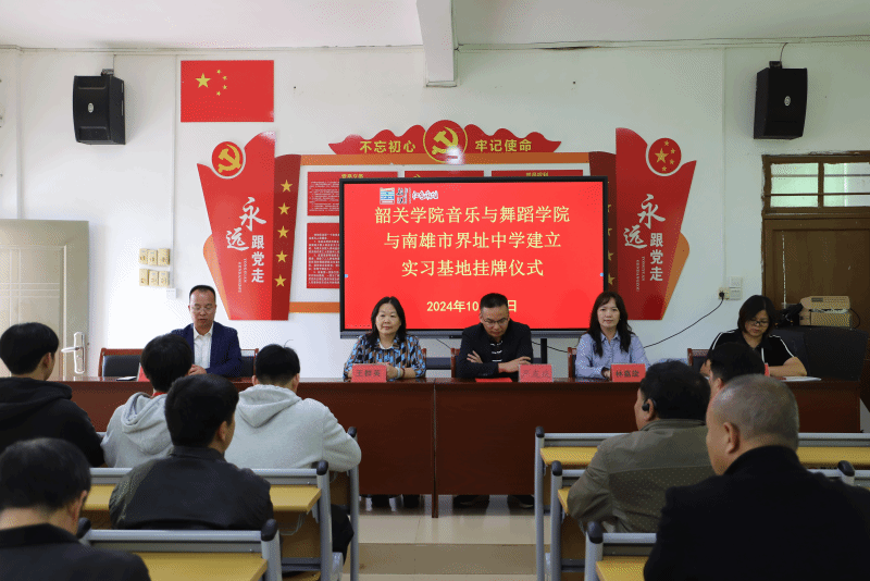 10月25日上午,韶关学院音乐与舞蹈学院与南雄市界址中学建立实习基地挂牌仪式在界址中学举行。音乐与舞蹈学院院长王群英、副院长林嘉旋、界址中学校长严友庆、副书记严罗生、副校长罗健诚等相关领导老师出席此次挂牌仪式。仪式由南雄市界址中学严罗生副书记主持。