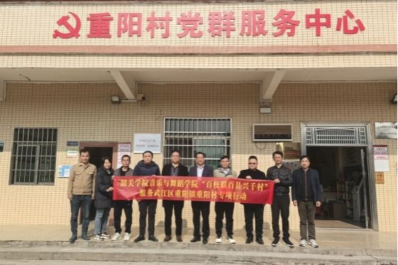 为贯彻省委和学校党委关于“双百行动”第二批共建项目的有关工作部署,1月8日,音乐与舞蹈学院党委书记谷永芹、副院长(主持工作)秦伟等一行5人到武江区重阳镇重阳村开展共建项目——“共创武江区文化品牌——艺荟芙蓉项目”调研,深入了解当地的历史文化、民俗等情况。学校驻武江区“百校联百县兴千村”服务队队长朱林山、重阳镇副镇长欧牛泉、重阳村支部书记、村主任陈六养及村委成员陪同调研并座谈。