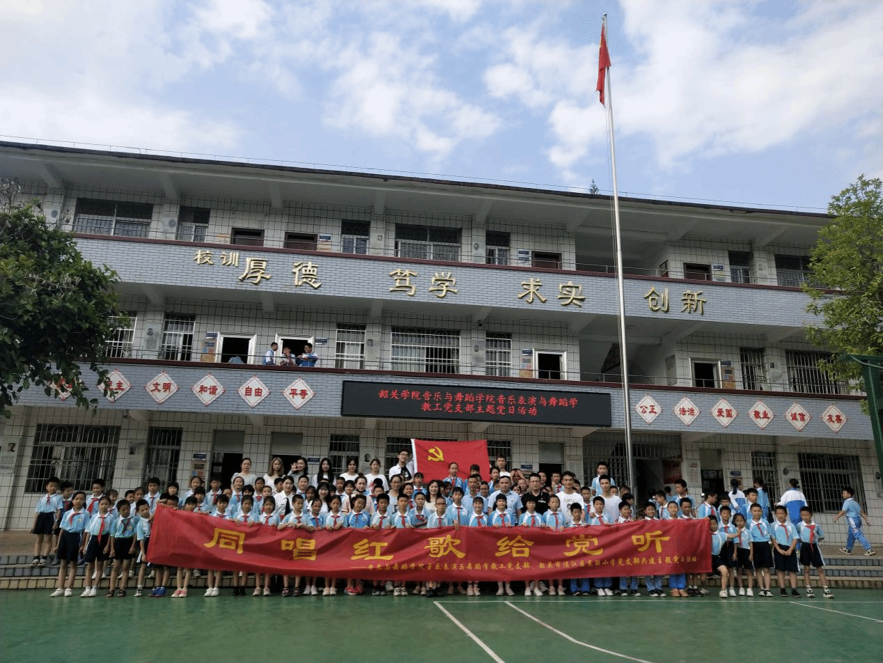 音乐表演与舞蹈学教工党支部和学生党员为少先队员们共同演唱红歌《不忘初心》
