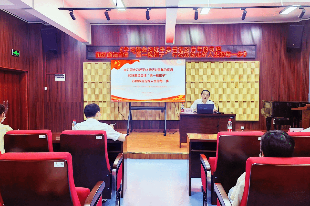 课上,宋贵林结合自身工作经历和学习体会,从对大学生开展廉洁教育的重要性和必要性、当前党风廉政建设和反腐败斗争面临的主要形势以及党和国家有关重大决策部署、目前社会上年轻干部腐败问题及相关典型案例剖析、对同学们的期望等四个方面系统解读,提出了五点殷切期望,语言生动、案例详实。黄四明希望大家认真学习领会,吃透内涵实质、精髓要义,并以此为起点,踏实工作、廉洁自律,扣好入职“第一粒扣子”。