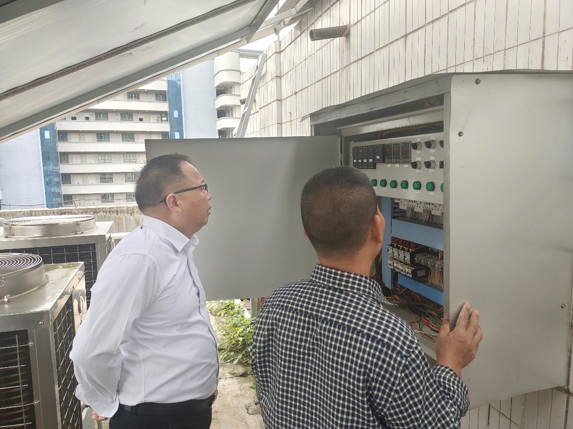 2023年10月11日,韶关市韶院资产经营有限公司总经理黄广初前往十里亭校区和黄田坝校区,对热水供应以及洗衣设备运营情况进行调研。