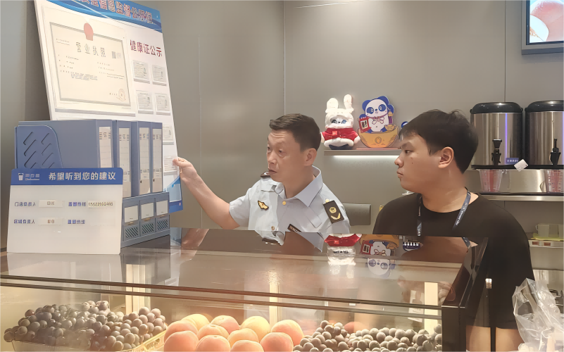 6月5日上午,韶关市市场监督管理局执法大队吴伟一行人莅临我司检查指导食品安全管理工作,对和韵文化艺术孵化基地餐饮商户进行了抽检。