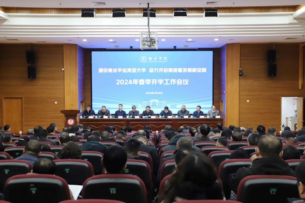 2月26日,学校召开2024年春季开学工作会议,围绕“建设高水平应用型大学 奋力开启高质量发展新征程”主题,总结回顾2023年学校工作情况,研究部署2024年学校重点工作。会上专题传达学习2024年全国教育工作会议和全省高质量发展大会精神,研究部署贯彻落实意见,进一步激发全校师生员工斗志和干劲,再次吹响学校高质量发展的冲锋号、集结号。全体校领导出席会议。