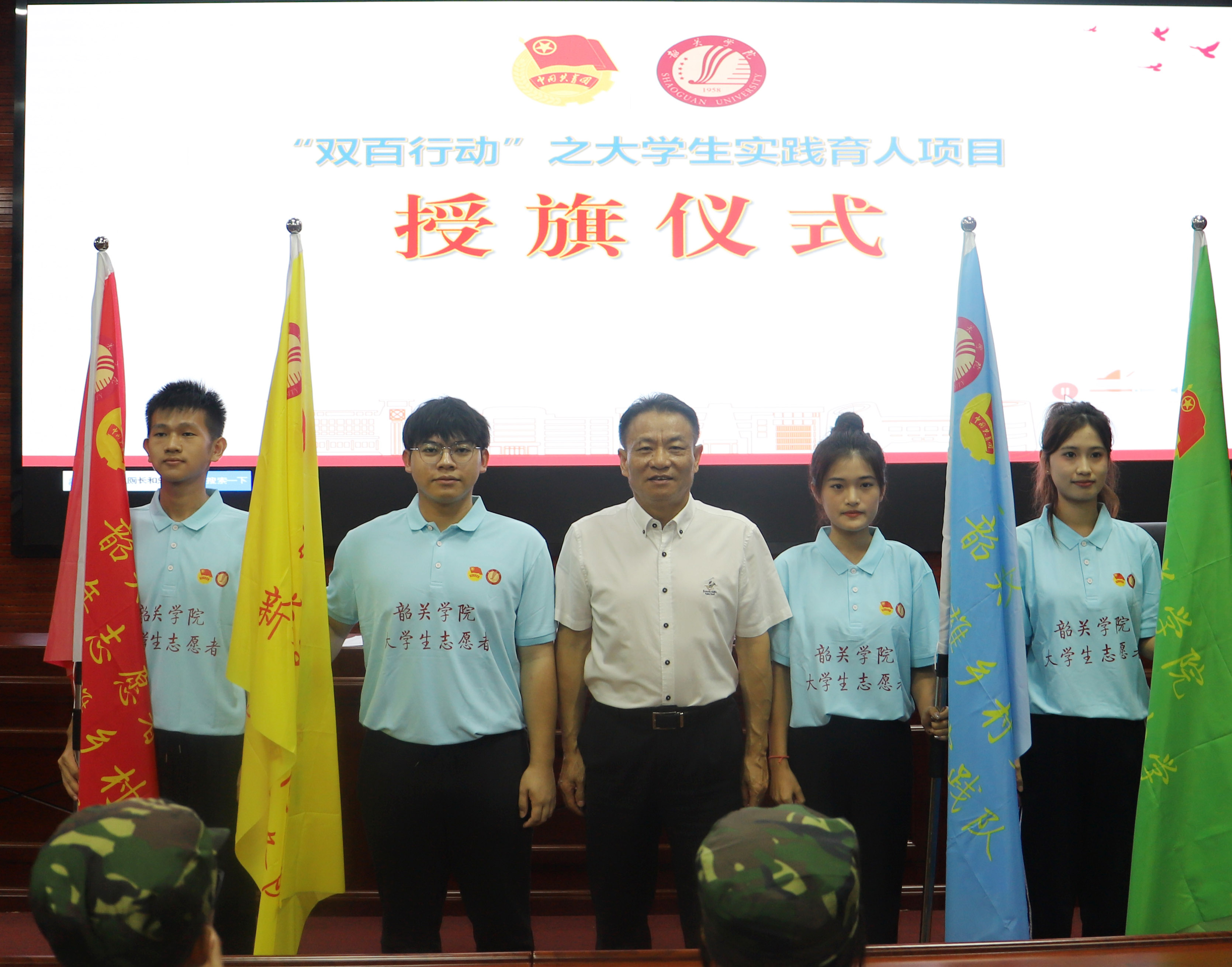 授课后,结合我校当前助力南雄“双百行动”的实际,孔云龙为“双百行动”之大学生实践育人项目授旗,号召广大青年自觉做习近平新时代中国特色社会主义思想的坚定信仰者、积极传播者、忠实实践者,以实现中华民族伟大复兴的中国梦为己任,不负时代,不负韶华,不负党和人民的殷切期望,用青春和热血创造美好未来,在祖国和人民最需要的地方书写人生华章。