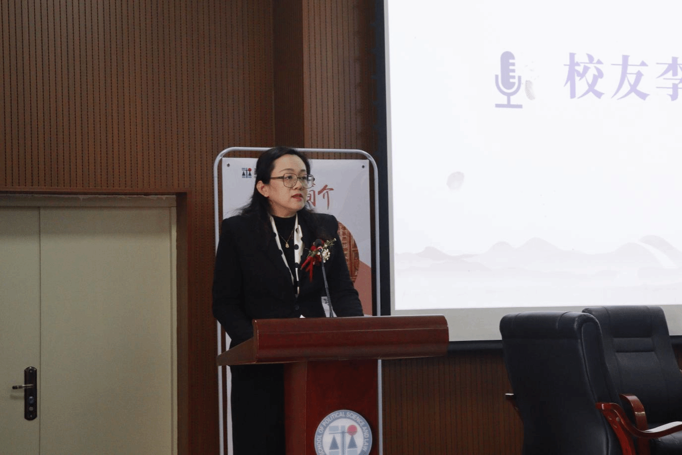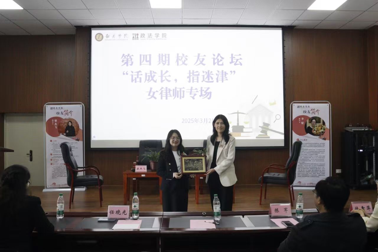 3月2日下午,政法学院在文德楼100综合实训室举行了以“话成长,指迷津”为主题的第四期校友论坛女律师专场活动。政法学院党委副书记任晓光,党委委员、副院长陈军,党委专职组织员、法学专业学生党支部书记肖德强,法学系主任徐素萍,辅导员罗鸿海,以及师生代表共100人参加了活动。