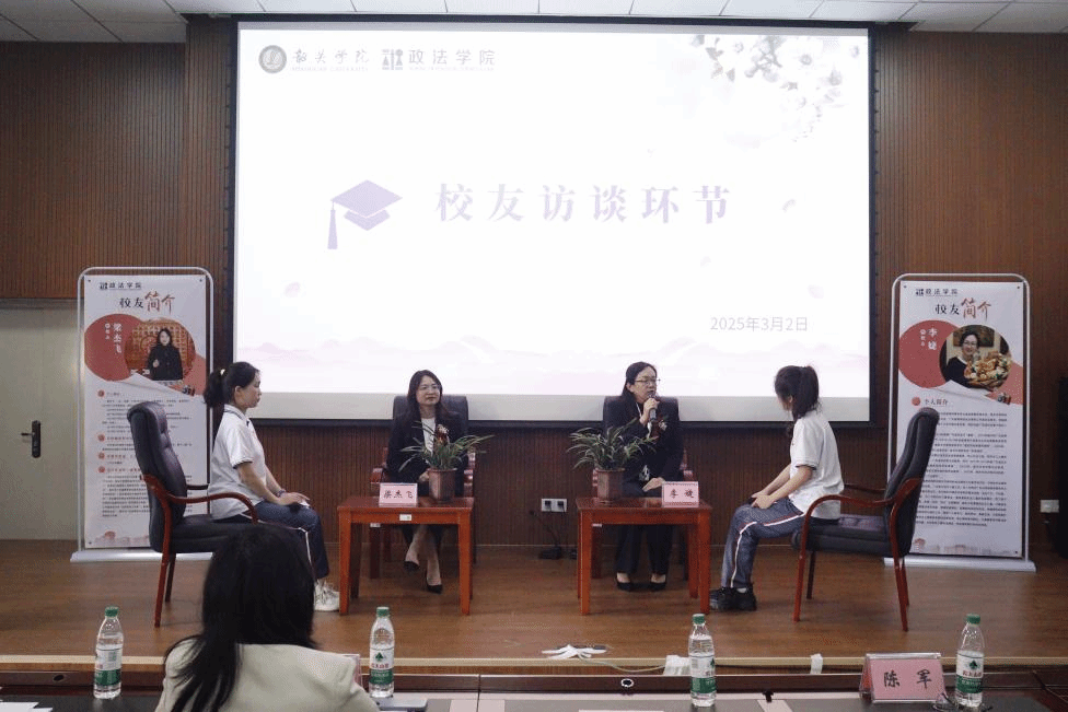 在访谈环节,李婕和梁杰飞围绕“女性律师的职业优势”“党建工作与法律服务工作相结合”等话题展开对话。在互动环节,同学们积极向校友提问,涉及职业选择、公益法律服务、律师行业发展趋势等多个方面。两位校友耐心解答,分享了实用的职业建议和个人心得。