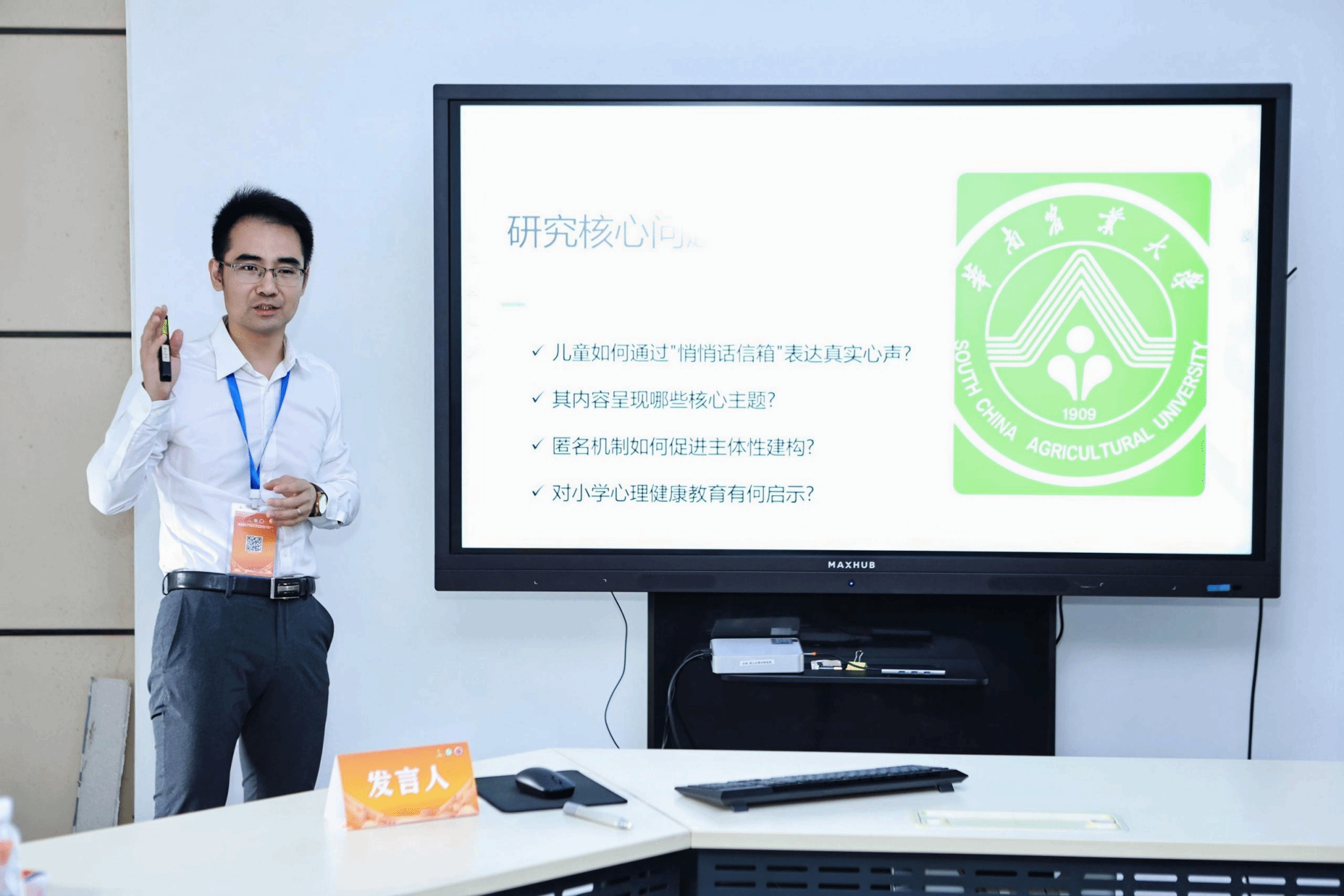 曾永辉副院长以《孩子易被忽视的心声 ——基于儿童主体性视角的小学悄悄话信箱质性研究》为题,深入探讨了儿童在校园中的真实声音与情感需求。研究通过分析“悄悄话信箱”中的儿童来信,揭示了儿童主体性在家庭与学校教育中的缺失问题,并提出了促进儿童参与、倾听儿童声音的实践策略,彰显了“以儿童为中心”的社会工作理念。