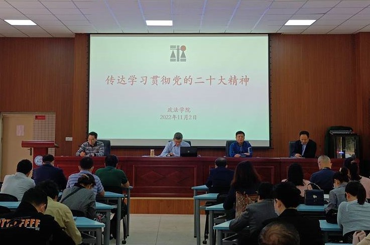 11月2号,政法学院召开全体教职工会议,传达学习党的二十大精神,学习贯彻全省、学校传达贯彻党的二十大精神会议精神,对学院学习宣传贯彻党的二十大精神作出动员部署,强调要以高度的政治责任感和历史使命感,把学习宣传贯彻党的二十大精神这项首要政治任务抓紧抓好抓出成效,让党的二十大精神在学院落地生根、结出硕果。学院党委书记林家坚主持会议。