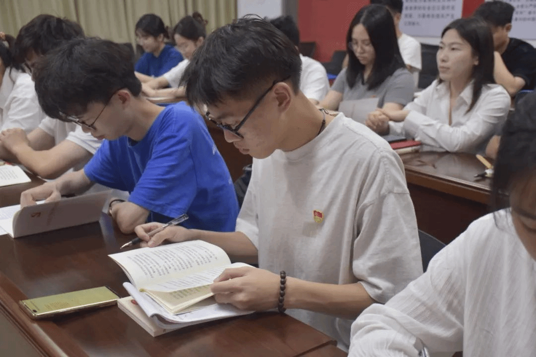 首先由学院兼职组织员谢鹏逐章逐条地领学新修订的《中国共产党纪律处分条例》(以下简称条例),引导青年党员学纪、知纪、明纪、守纪,要求大家准确把握条例的主旨要义和规定要求,强化对条例的认识和理解,增强纪律意识,守住纪律底线,自觉提升党性修养。随后两个学生党支部书记肖德强、张祖怡及谢鹏领学《论中国共产党历史》《论党的自我革命》等书籍的部分内容,带领大家重温党的初心使命、性质宗旨、理想信念,从党史中汲取砥砺奋进的强大精神力量。