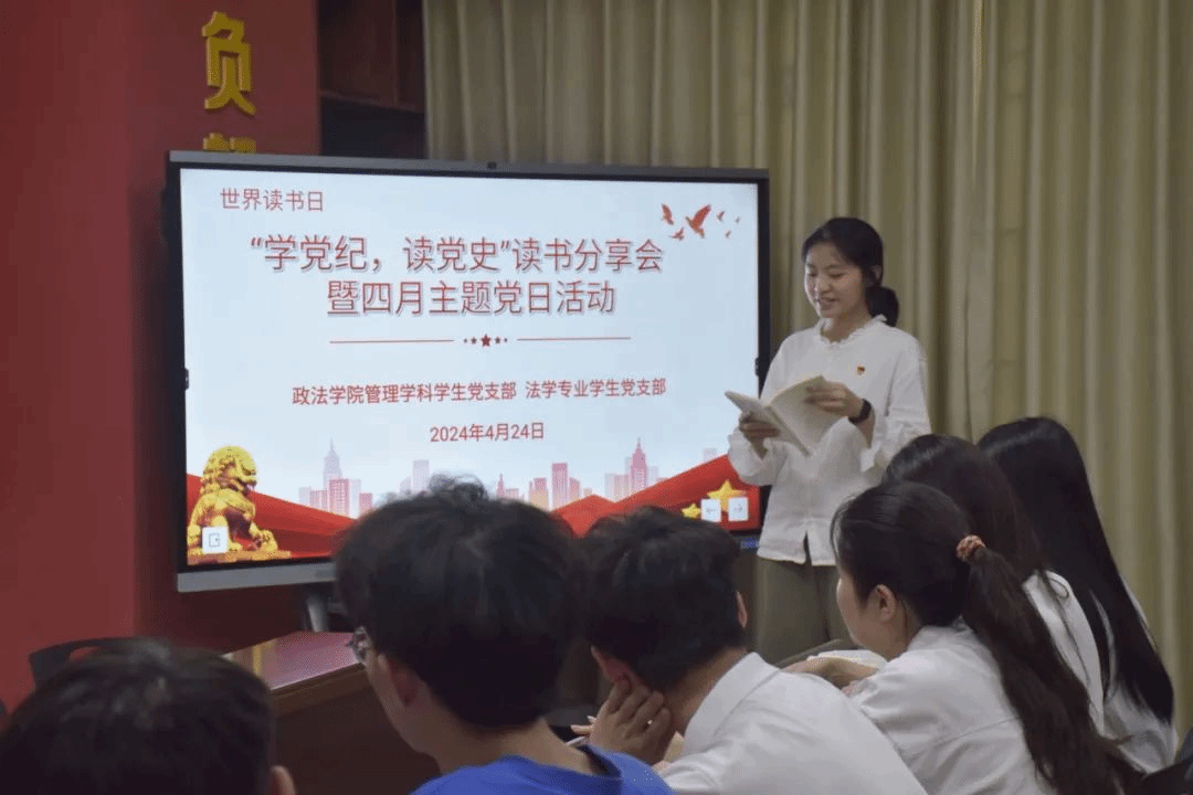 为推动党纪学习教育走深走实,进一步推进党史学习教育,营造良好的读书学习氛围,4月24日,政法学院两个学生党支部在芙蓉苑社区开展世界读书日之“学党纪,读党史”读书分享会暨四月主题党日活动。