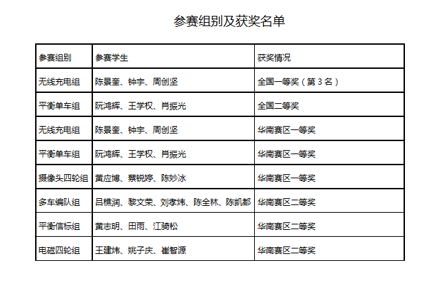 据悉,全国大学生智能汽车竞赛是一项以“立足培养、重在参与、鼓励探索、追求卓越”为指导思想,面向全国大学生的探索性工程实践类赛事,是教育部国家教学质量与教学改革工程重要赛事之一,属A类大学生竞赛项目。我校智能工程学院在2021年9月就启动了第十七届全国大学生智能汽车竞赛相关工作,在韩竺秦、龙迎春、林辉、朱熔熔等教师的指导下,历经招募、培训、校赛,选拔出6支代表队参加了7月份的华南赛区全国选拔赛,共获得一等奖3项,二等奖3项。优异成绩的取得,充分彰显了我校学子扎实的专业知识和较强的操作实践能力,通过以赛促教、以赛促学、以赛促创展现了我校在人才培养、学生实践创新能力训练等方面取得的优异成果。