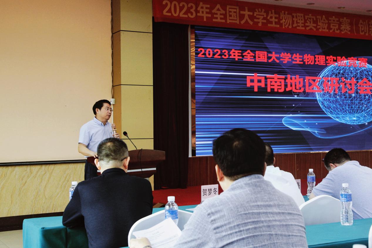 全国高等学校实验物理教学研究会副理事长、国家级实验教学示范中心联席会物理学科组中南地区负责人、中山大学蔡志岗教授代表本次研讨会举办方介绍了全国大学生物理实验竞赛情况。