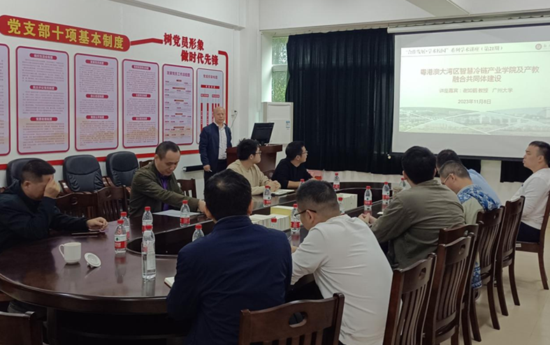 谢如鹤以《粤港澳大湾区智慧冷链产业学院及产教融合共同体建设》为主题作学术报告,并从坚持立德树人,共同打造冷链行业特色思政育人体系;注重标准引领,全面深入实施智慧冷链标准化战略;加强协同创新,搭建智慧冷链技术协同创新平台;重视技能人才,畅通技术技能人才培养通道;强化终身学习,建立与学历继续教育相衔接的培训体系;拓展国际视野,推动智慧冷链职业教育“随企出海”等几个方面分享了粤港澳大湾区智慧冷链共同体和智慧冷链产业学院的建设经验和取得的成绩。会上,谢如鹤与参会教师进行了深入交流,共同探讨产教融合共同体和产业学院项目建设过程遇到的困难和解决路径。