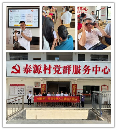 除了家电义务维修外,学院还组织师生开展了助“盲”导航人工智能科普活动。该项活动旨在通过智能技术帮助视障人士更好地融入社会,提高他们的生活质量。志愿者们首先对参与的视障人士进行了详细的需求调查,了解他们在日常生活中遇到的困难和挑战,并向他们介绍了智能助盲眼镜的基本原理和功能。随后,志愿者们向村民们展示了智能助盲导航眼镜相配套的APP,贴心地讲解APP的设计思路与功能,让村民们更深入了解项目最新研究成果。最后,志愿者们还进行了智能助盲眼镜的现场演示,并邀请几位视障村民试戴智能助盲眼镜。通过亲身体验,他们对智能助盲技术有了更直观的认识和感受。活动结束后,村民们对智能助盲眼镜表现出了浓厚的兴趣,并希望未来能有更多类似的科普活动。接下来,学院将继续关注视障群体的需求,探索更多智能技术在助残领域的应用,为扎实推进“双百行动”,服务南雄高质量发展贡献力量。