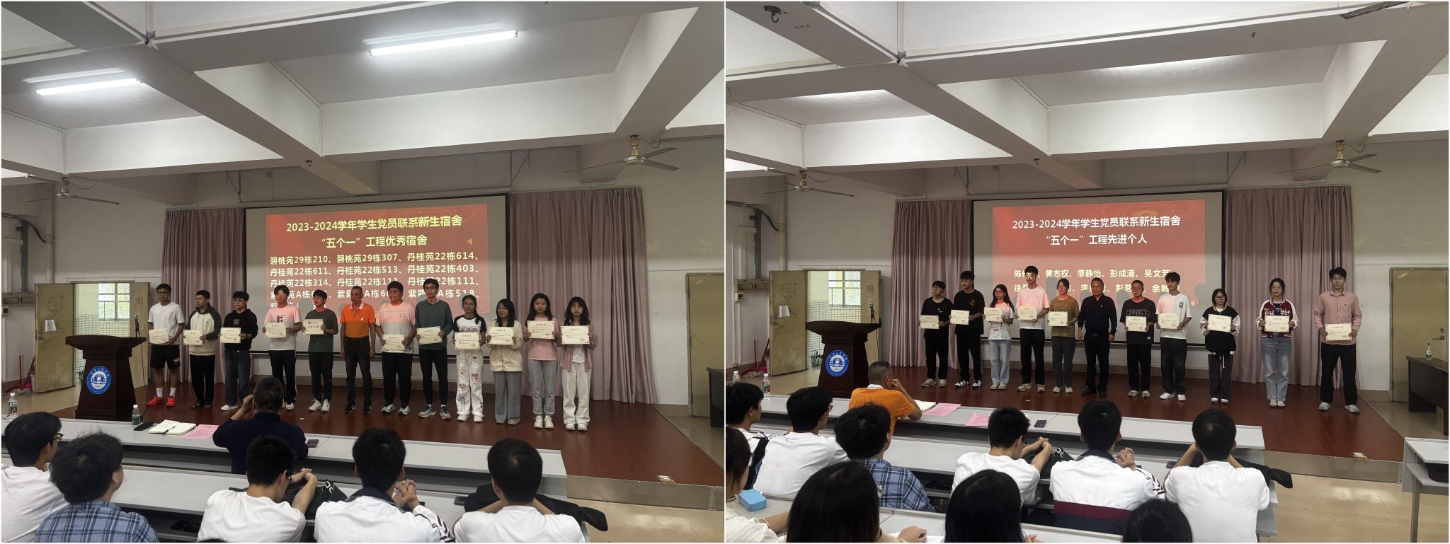 会上,学院兼职组织员黄留威向大会作了学院2023-2024学年学生党员联系新生宿舍“五个一”工程工作汇报。大会对学生党员联系新生宿舍“五个一”工程优秀宿舍和先进个人进行了表彰。梁健和杨国强分别为优秀宿舍代表和先进个人颁发了荣誉证书。