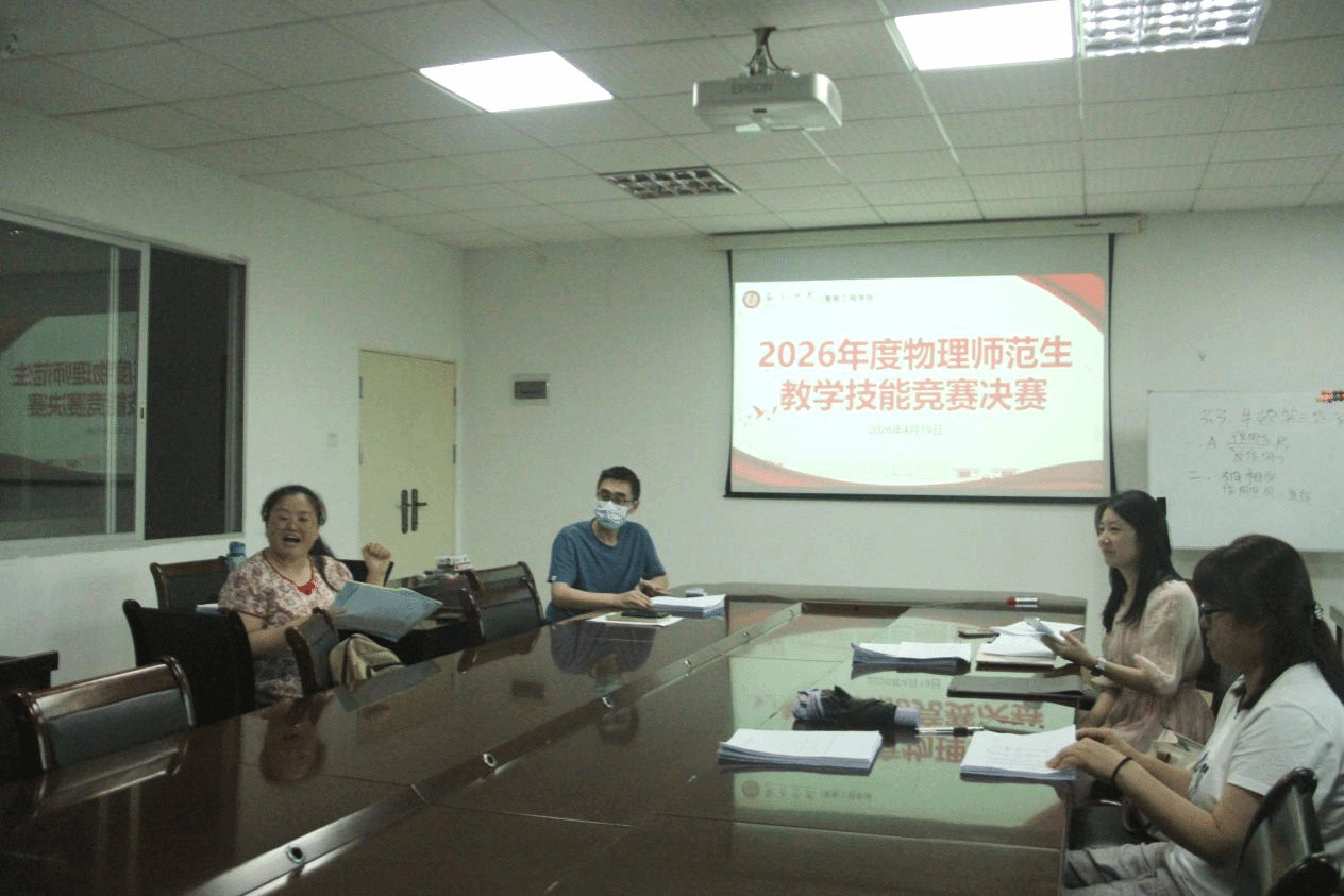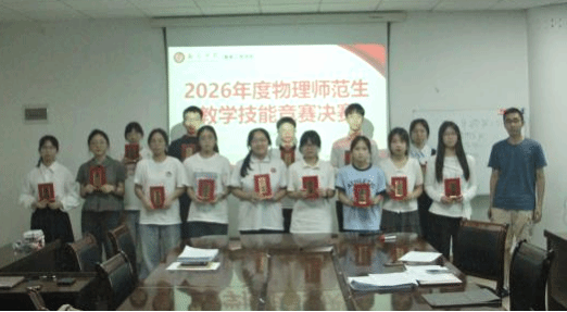 为深入落实新时代强师计划,夯实物理师范生教学基本功,以赛促学、以赛促练、以赛促成长,4月19日,我院成功举办2026年度物理师范生教学技能竞赛决赛。本次赛事全程历时5小时,33名优秀物理师范生同台竞技、现场授课,经过评委专业点评、获奖名单公布、颁奖表彰等完整环节,圆满落下帷幕。