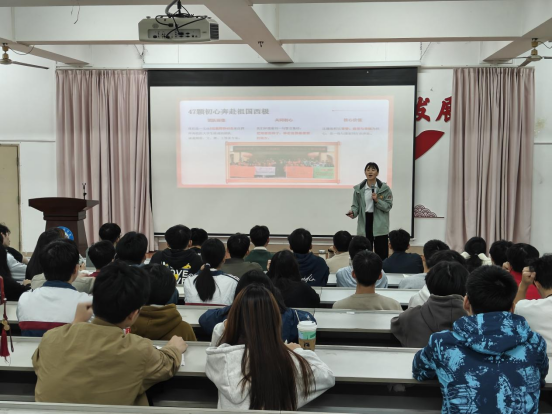11月5日,我院在敏思楼101举办援疆支教志愿者分享会。智能工程学院自动化系教师彭昕昀作为广东援疆大学生支教团第六批副团长,以《青春向党,筑梦边疆——从援疆支教看青年担当与时代召唤》为题,与在场师生分享了她在新疆图木舒克市的支教经历与成长感悟,100余名学生代表参加了分享会。