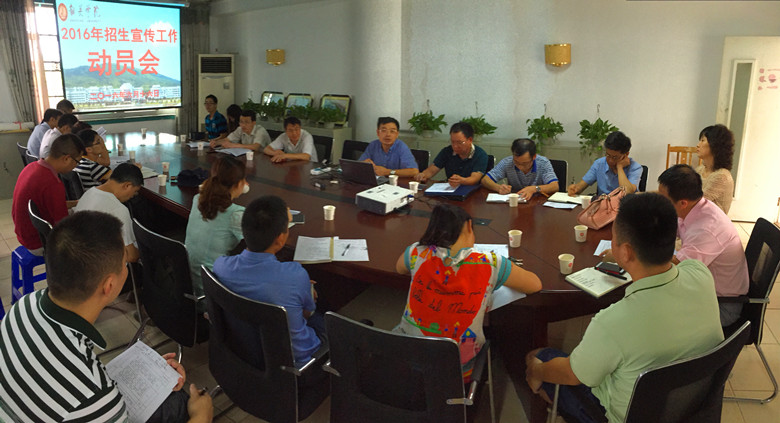 为做好2016年招生工作,进一步提高我校生源质量,6月16日下午,我校召开了2016年招生宣传工作动员会。学校招生办全体人员、各二级学院参加招生宣传的有关老师出席了会议。会议由学校招生办主任周泽雄主持。